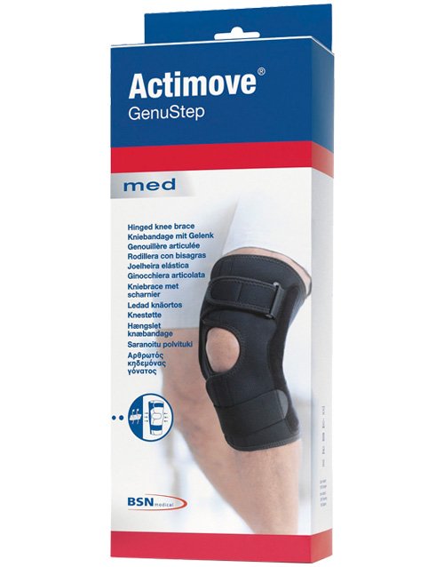 Actimove GenuStep is constructed from advanced breathable, neoprene-free fabric which provides effective compression and pain relief. The slim-line, wrap around design makes it easy to apply and wear under normal clothes whilst preventing brace migration. Knee movements are guided anatomically by polycentric hinges, providing reassuringly safe knee support.
